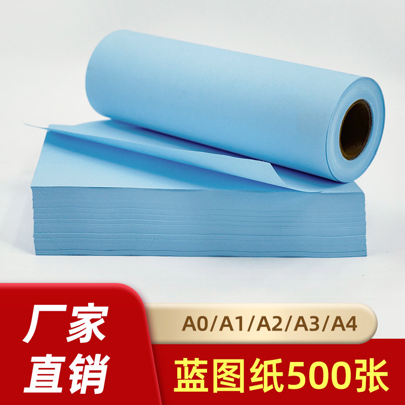 蓝图纸图纸A0绘图仪蓝图A1卷纸卷筒A2绘图工程纸双面蓝A3打印纸A4