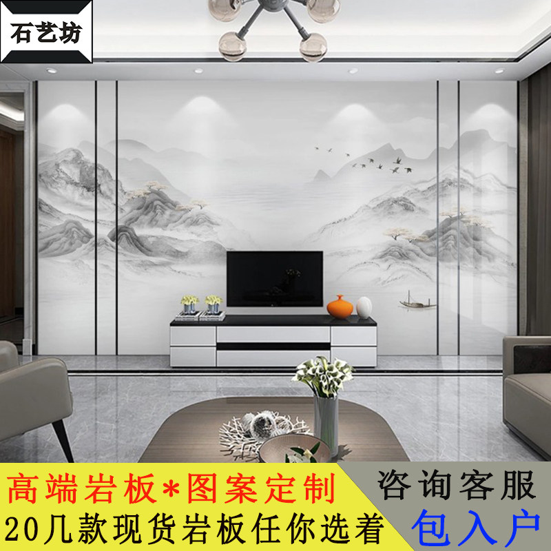岩板电视背景墙简约轻奢石材大理石瓷砖大板客厅新中式定制影视墙热门设计联盟服务商