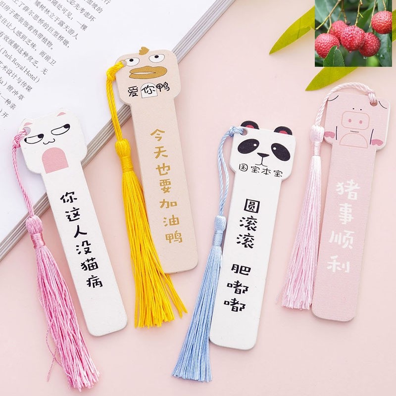创意卡通呆萌动物木制直尺少女心流苏挂件木制书签学生翻书夹热门设计联盟服务商