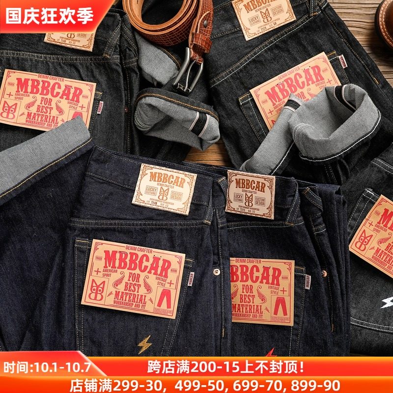 14OZ基础百搭休闲重磅赤耳丹宁牛仔裤MBBCAR窄幅原创设计刺绣潮男热门设计联盟服务商