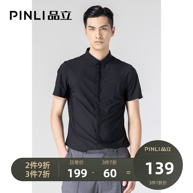 PINLI品立夏季新款男装修身纯色商务衬衫短袖衬衣B202713318热门设计联盟服务商