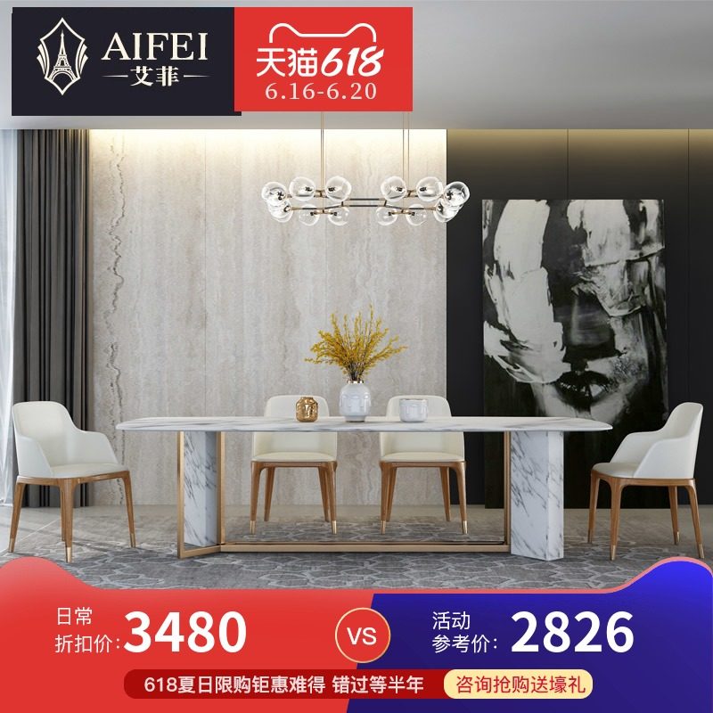 艾菲 后现代大理石餐桌椅组合别墅设计师饭桌台长方形轻奢餐桌椅热门设计联盟服务商