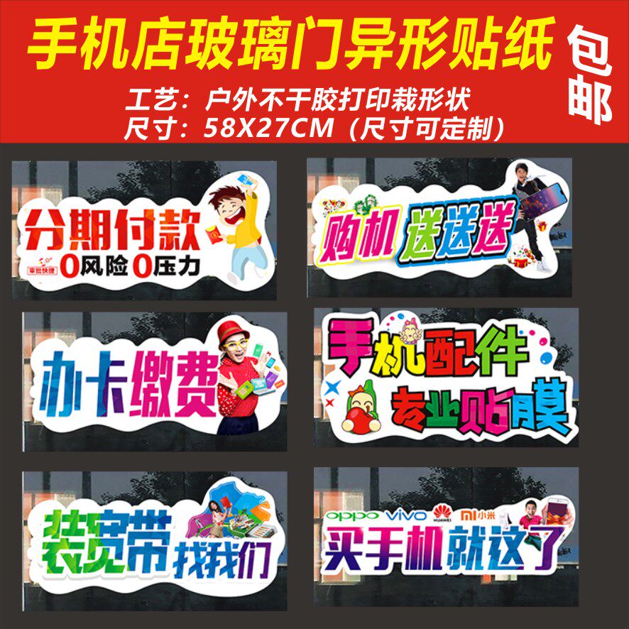 手机店玻璃门贴纸橱窗装饰防水异形维修广告海报墙贴品牌标志贴画热门设计联盟服务商