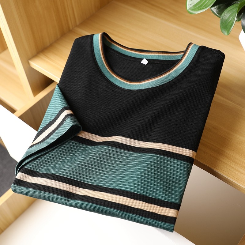 透气清凉落落大方 夏季商务休闲男装圆领短袖T恤 撞色条纹半袖衫热门设计联盟服务商