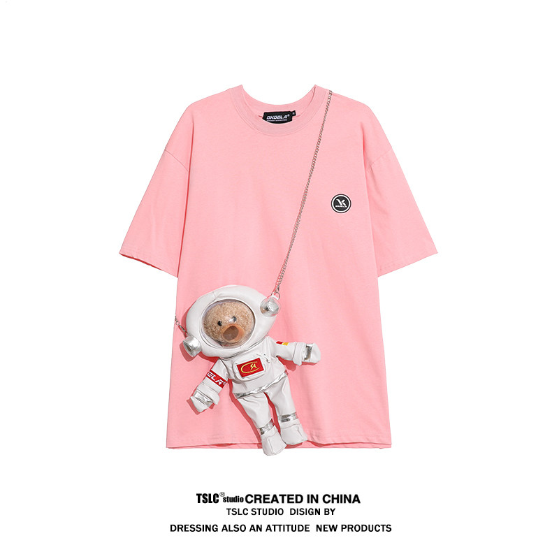 TSLC NASA联名宇航员小熊公仔挂包小众t恤女短袖ins设计感情侣装热门设计联盟服务商