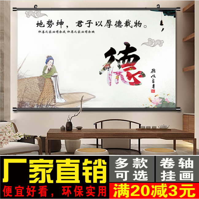 办公室厚德载物卷轴挂画墙贴画自粘画字画书房书法装饰画防水海报热门设计联盟服务商