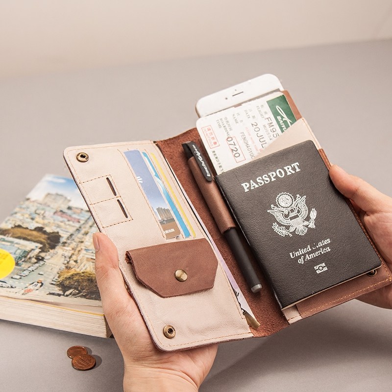 YUANGU LEATHER 原古 复古纯牛皮简约护照夹机票手机真皮手拿钱包热门设计联盟服务商