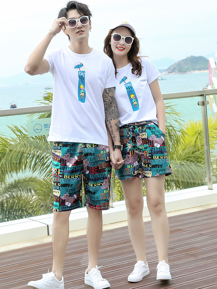 情侣装小众夏季设计感情侣版一套套装2021新款潮流女t恤度假旅游热门设计联盟服务商