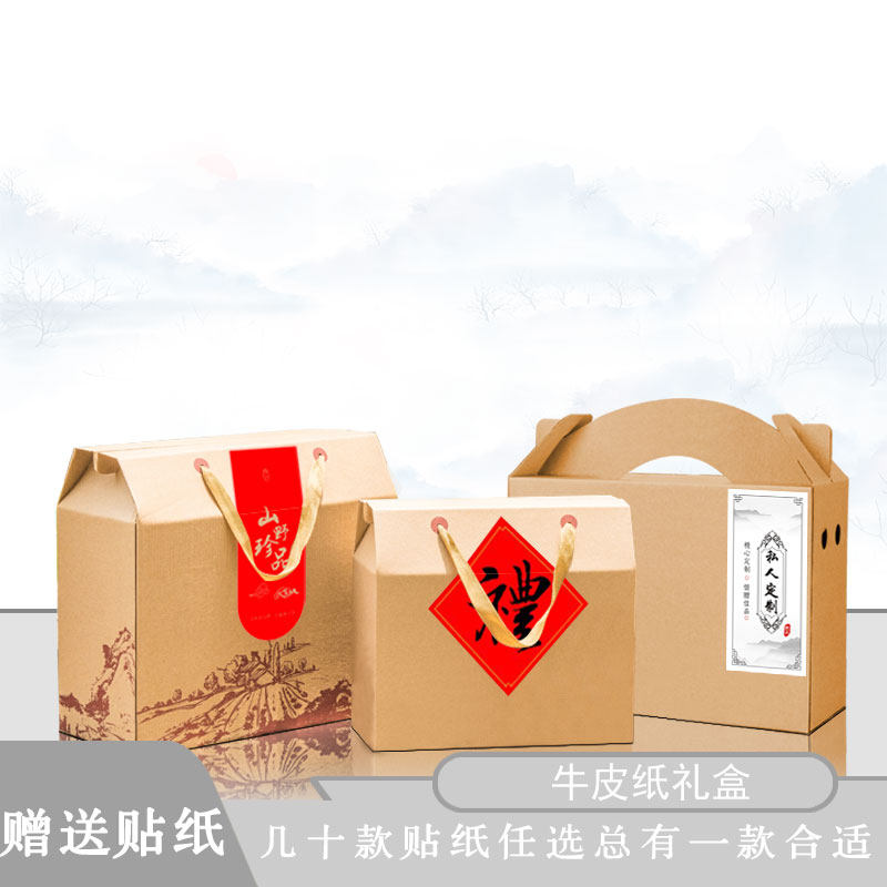 土特产农产品牛皮纸礼盒外包装盒定做手提礼品盒定制创意贴纸设计热门设计联盟服务商
