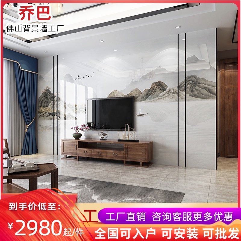 石材电视背景墙瓷砖大理石渗墨大板砖影视墙新中式中国风边框装饰热门设计联盟服务商