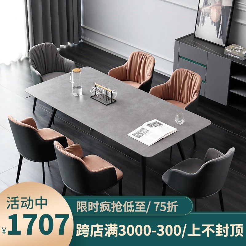 意式岩板餐桌现代别墅餐厅小户型家用轻奢设计师铝合金饭桌椅组合热门设计联盟服务商