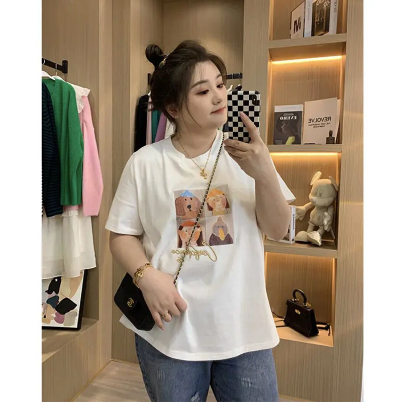 胖佳佳大码圆领短袖卡通印花T恤女春夏胖MM宽松遮肉显瘦正肩上衣热门设计联盟服务商