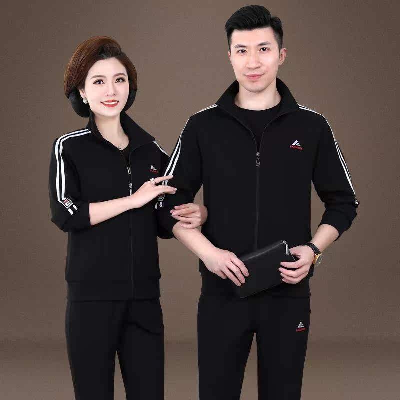 谷李宁美中老年情侣运动套装春秋中年男女长袖大码三件套团购跑步热门设计联盟服务商