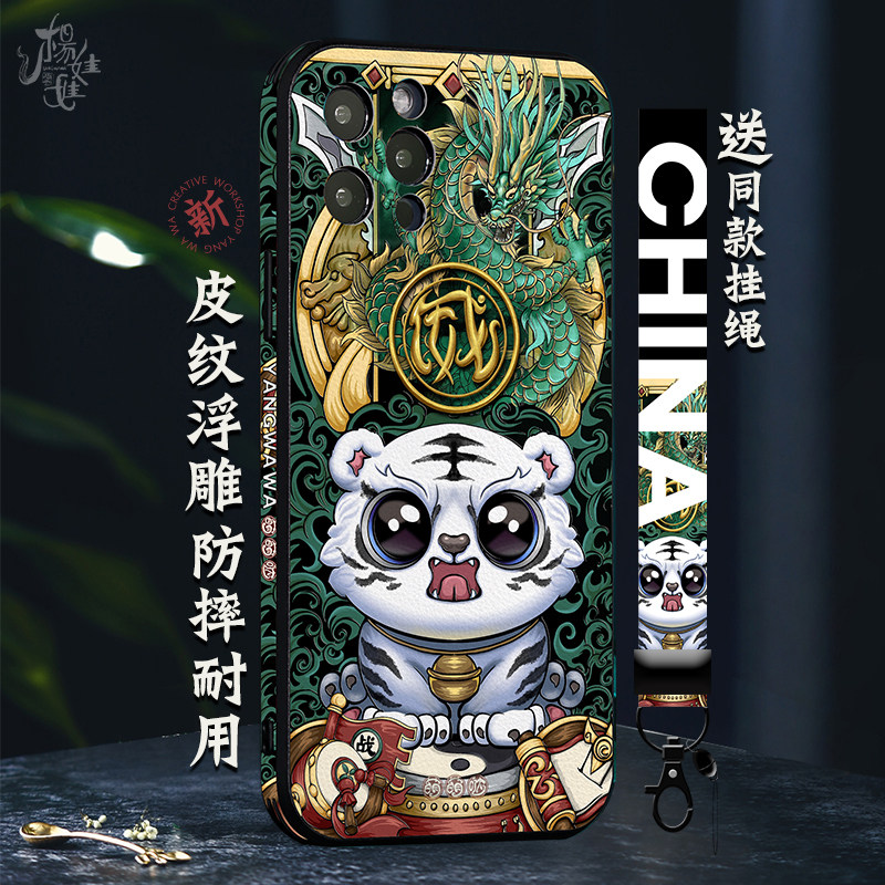 适用苹果12手机壳11防摔皮质创意十二生肖中国风全包镜头国潮龙虎热门设计联盟服务商
