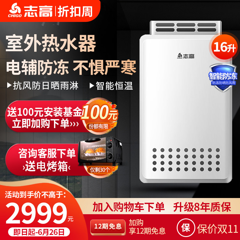 志高燃气热水器室外机户外防冻天然气强排式变频恒温家用16升防水热门设计联盟服务商
