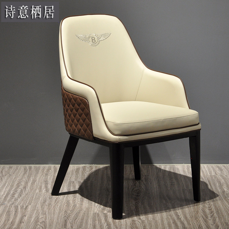 宾利椅子餐椅家用意式简约现代实木轻奢网红餐厅售楼部真皮洽谈椅热门设计联盟服务商