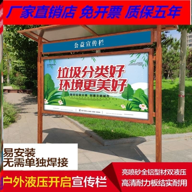 液压防水报栏挂墙展牌橱窗式制度公园开启公告栏木纹铝合金宣传L热门设计联盟服务商