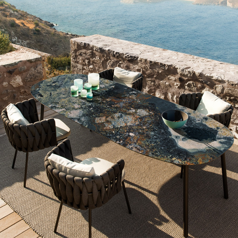 户外庭院岩板桌椅组合休闲室外露天阳台花园别墅织带藤编藤椅餐桌热门设计联盟服务商