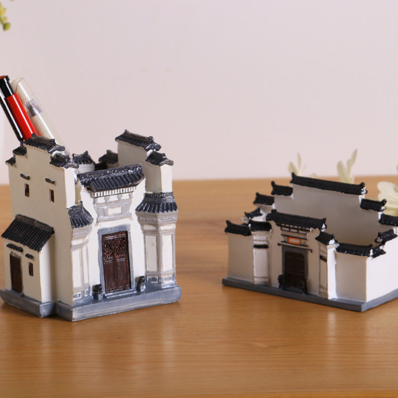 文创意徽派建筑风格笔筒名片夹复古风装饰书房办公室办公桌面摆件热门设计联盟服务商