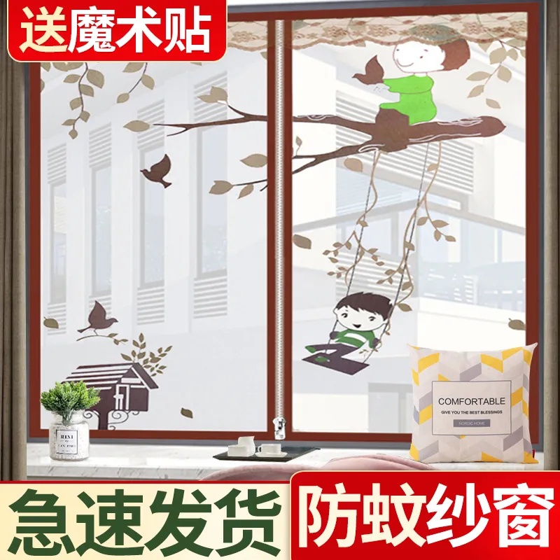 自贴防蚊纱窗魔术贴拉链门户纱网加厚防蚊网自粘厨房窗户厕所飘。热门设计联盟服务商
