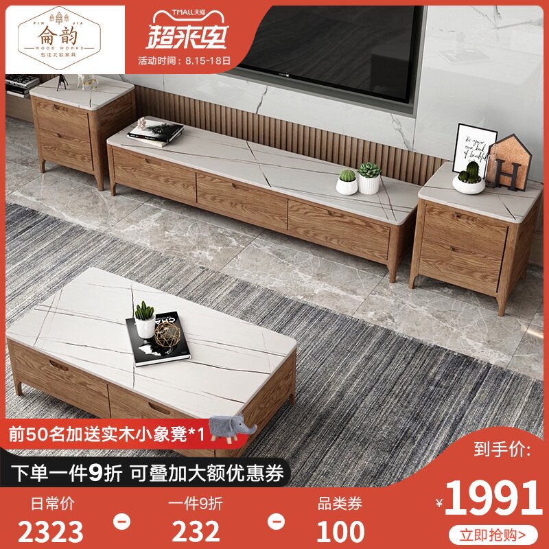 北欧简约全实木岩板茶几电视柜组合加边柜现代影视柜大理石地台柜热门设计联盟服务商