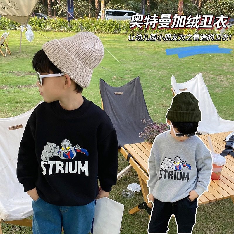 陈大猪飞行超人奥特曼秋冬加绒卫衣圆领上衣儿童装男童卡通热门设计联盟服务商
