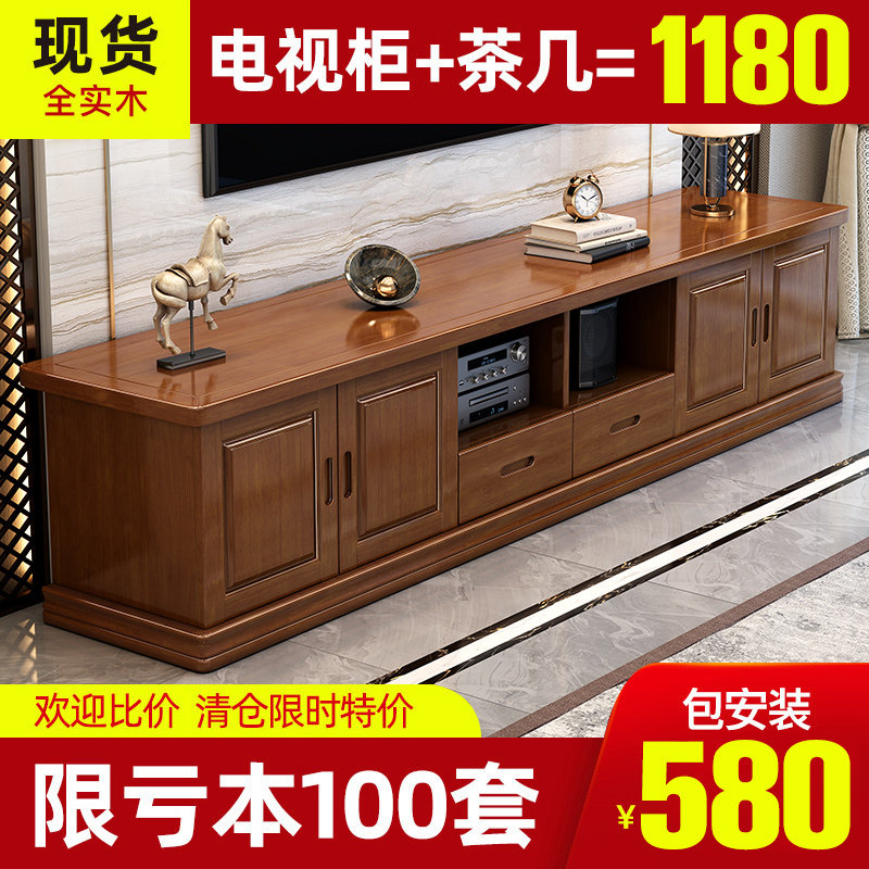 全实木电视柜茶几组合客厅现代简约北欧伸缩地柜影视柜小户型家具热门设计联盟服务商