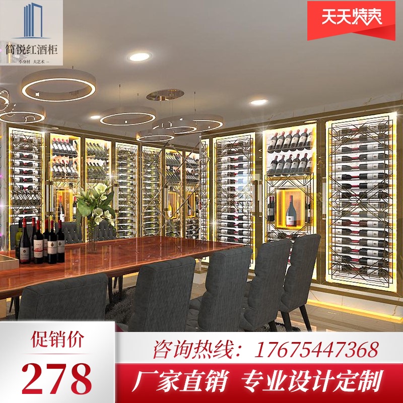 欧式简约不锈钢红酒架定制恒温酒柜家用展示柜嵌入式展示架置物架热门设计联盟服务商