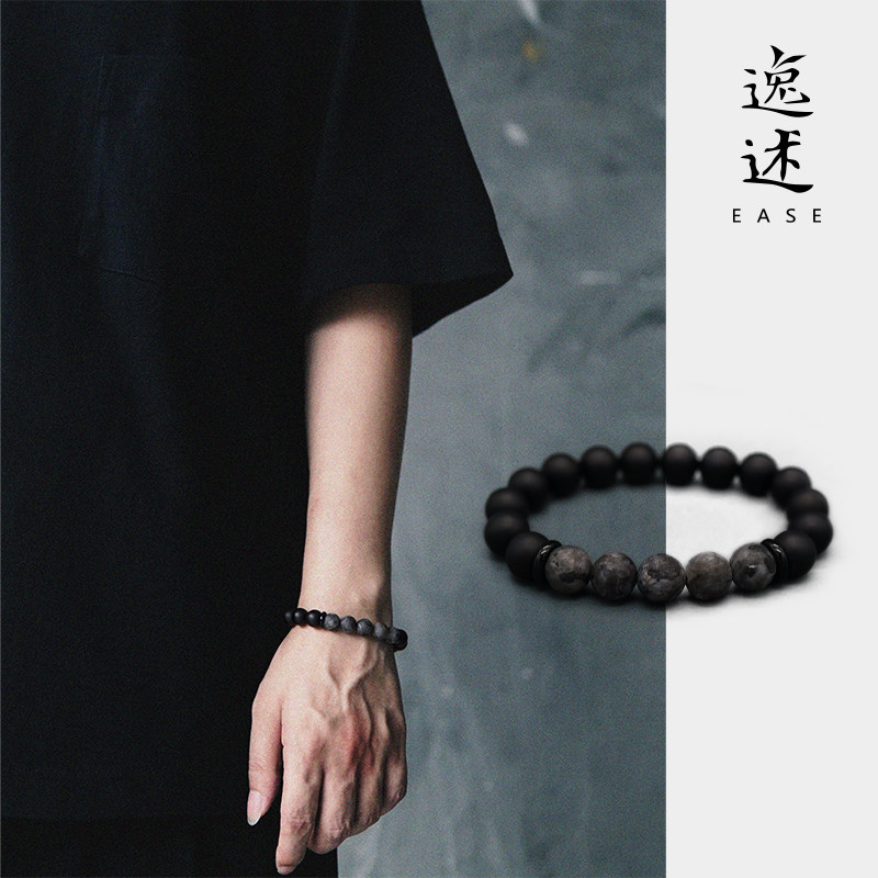 手工逸述原创设计黑玛瑙闪光石潮男款简约个性水墨风手链复古手串热门设计联盟服务商
