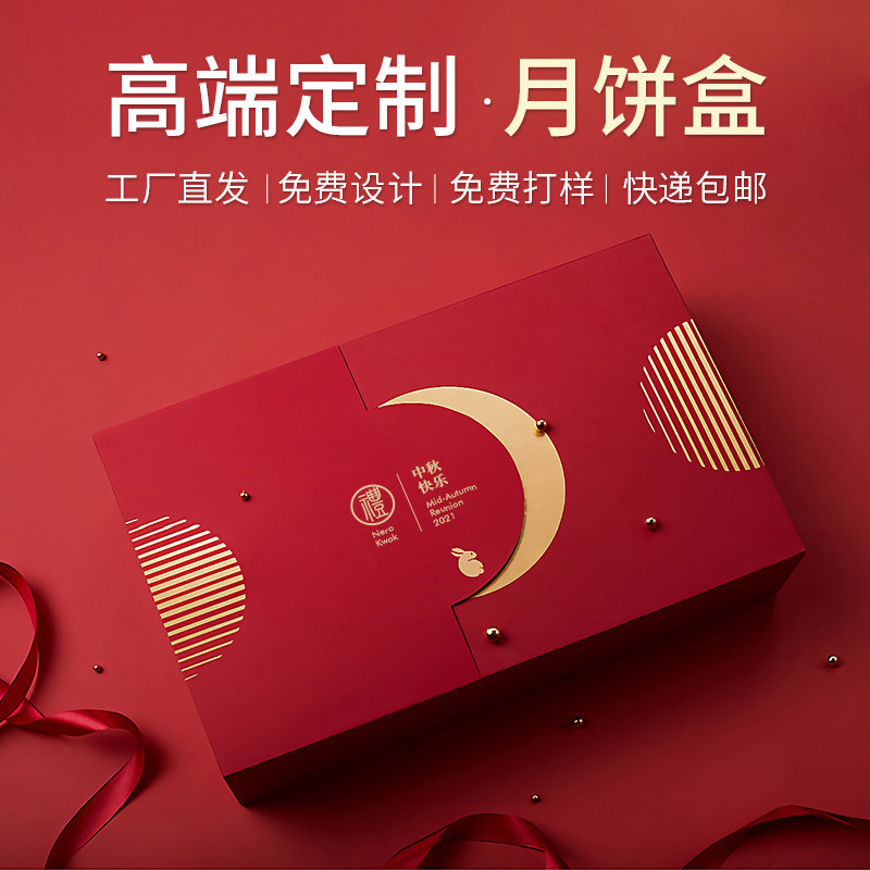 高端中秋礼盒月饼包装盒定制企业公司礼品盒订做空盒硬盒印刷logo热门设计联盟服务商