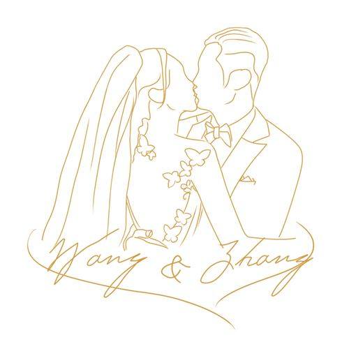 真人照片手绘婚礼婚庆请帖漫画头像人像简笔画Y设计图案定制热门设计联盟服务商