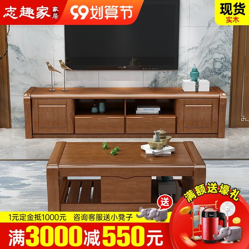 中式现代电视柜简约全实木小户型客厅家用经济储物影视柜整装家具热门设计联盟服务商