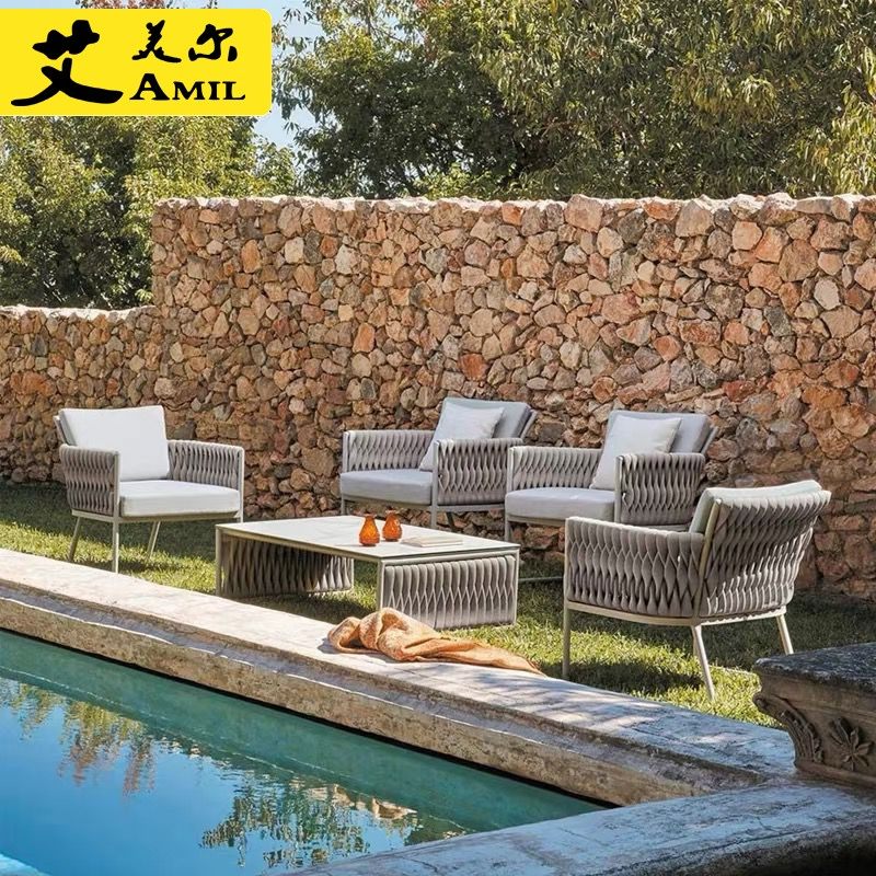 北欧户外藤编沙发防水防晒休闲阳台酒店别墅设计师样板间桌椅组合热门设计联盟服务商