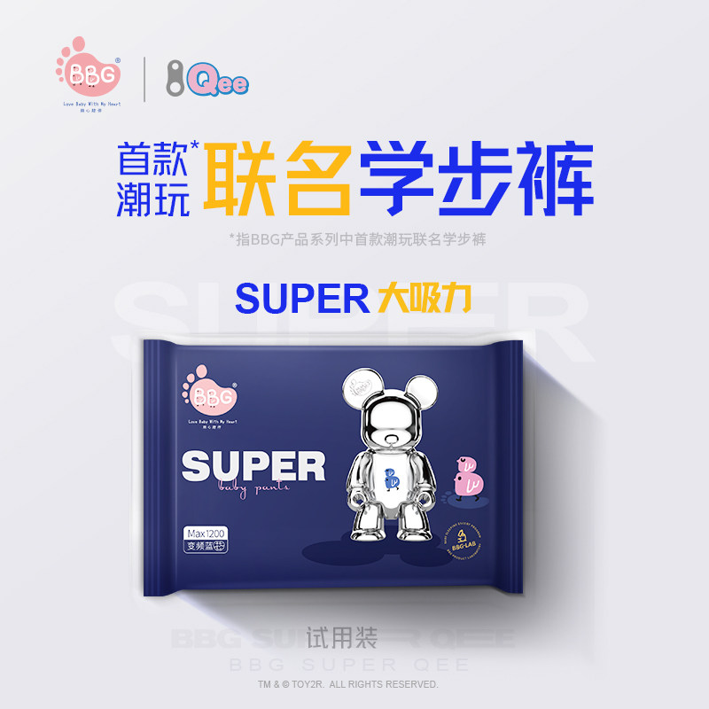 BBG&Qee联名 潮玩婴儿拉拉裤学步裤L/XL潮酷干爽透气 试用装5片热门设计联盟服务商