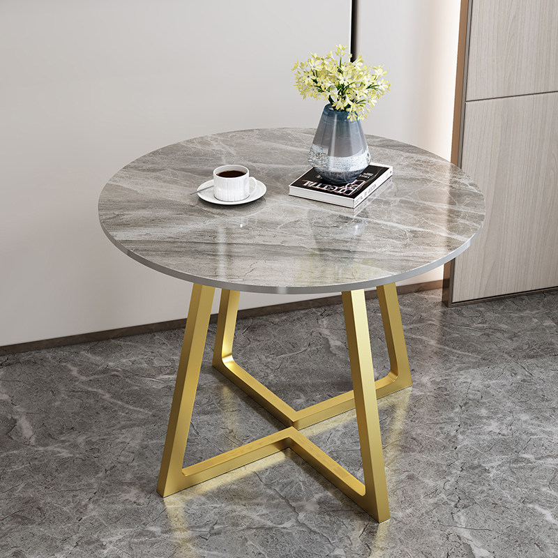 岩板小圆桌餐桌北欧简约洽谈接待大理石会议桌售楼部轻奢休闲圆桌热门设计联盟服务商