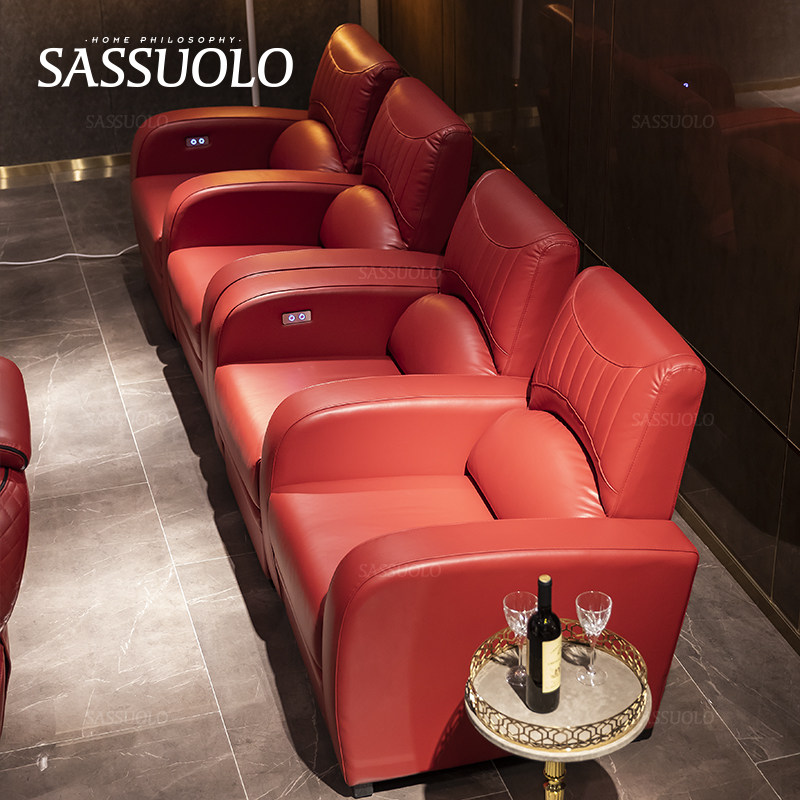 萨索罗/大红色头层纳帕牛皮电动影音室视厅沙发/兰博基尼椅子定制热门设计联盟服务商