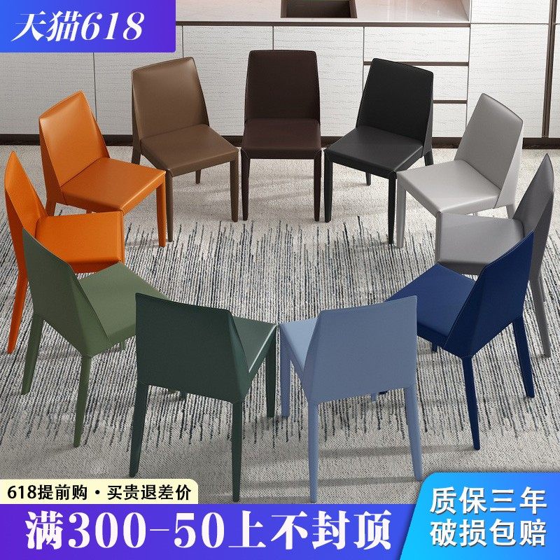 意式极简餐椅家用吃饭餐厅餐桌椅设计师靠背皮椅工业风椅子马鞍椅热门设计联盟服务商