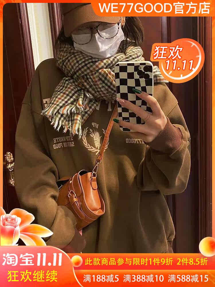 SSELM WE77GOOD美式复古风节约粮食图标宽松圆领卫衣加绒长袖国潮热门设计联盟服务商