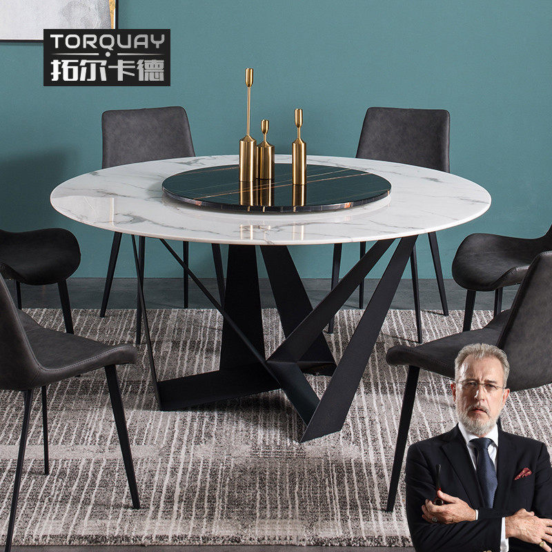 意式极简大理石餐桌工业风圆形后现代简约创意设计师组合小户型热门设计联盟服务商