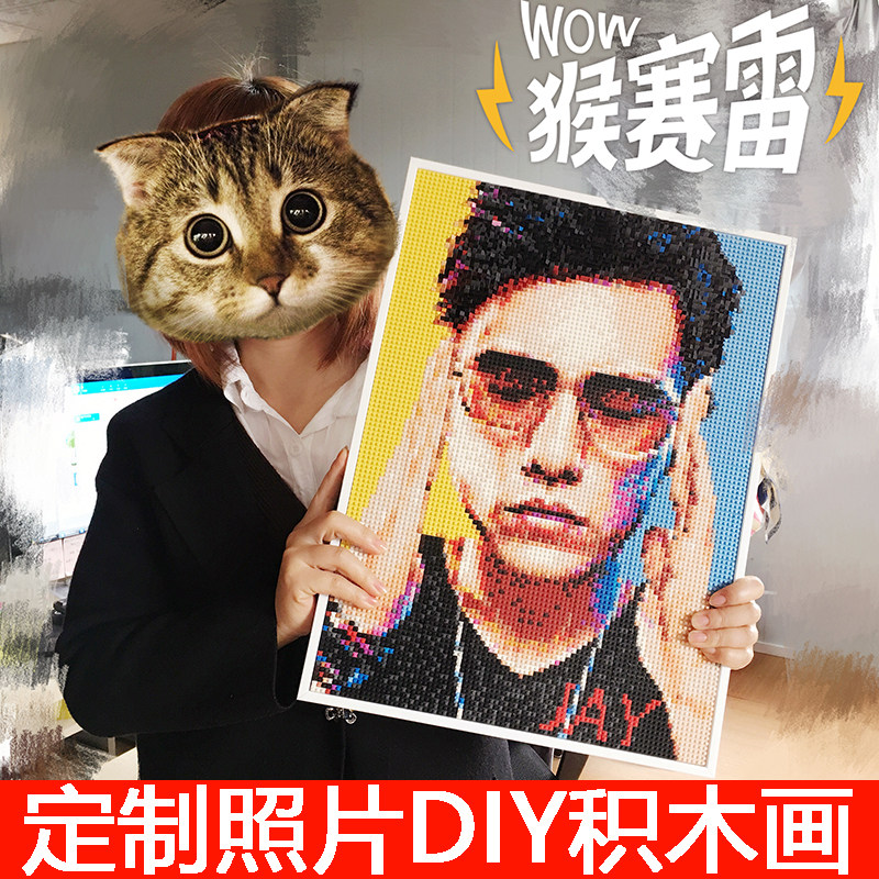 積多成木積木畫肖像定製照片DIY微積木送男女朋友定制乐高像素画热门设计联盟服务商