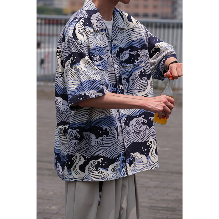 特价可乐生活 夏季宽松Aloha海浪日系复古雇领工装短袖衬衫男女热门设计联盟服务商