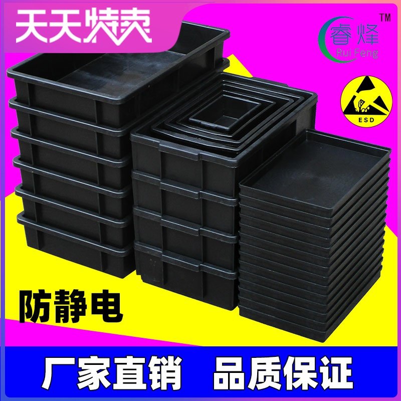 黑色防静电盒物料收纳箱长方形塑料盒周转箱子电子产品盒子可配盖热门设计联盟服务商