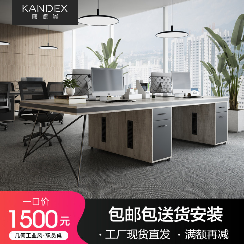 铁艺工业风职员办公桌椅组合 简约现代4人位办公家具四人位员工桌热门设计联盟服务商