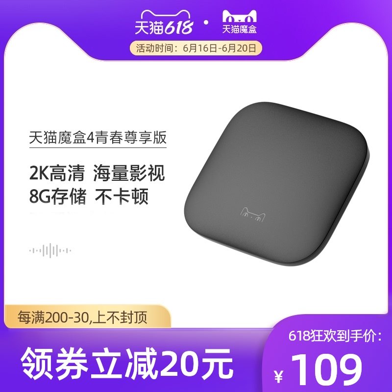 天猫魔盒4青春尊享版红外智能网络机顶盒wifi高清2K手机无线投屏热门设计联盟服务商