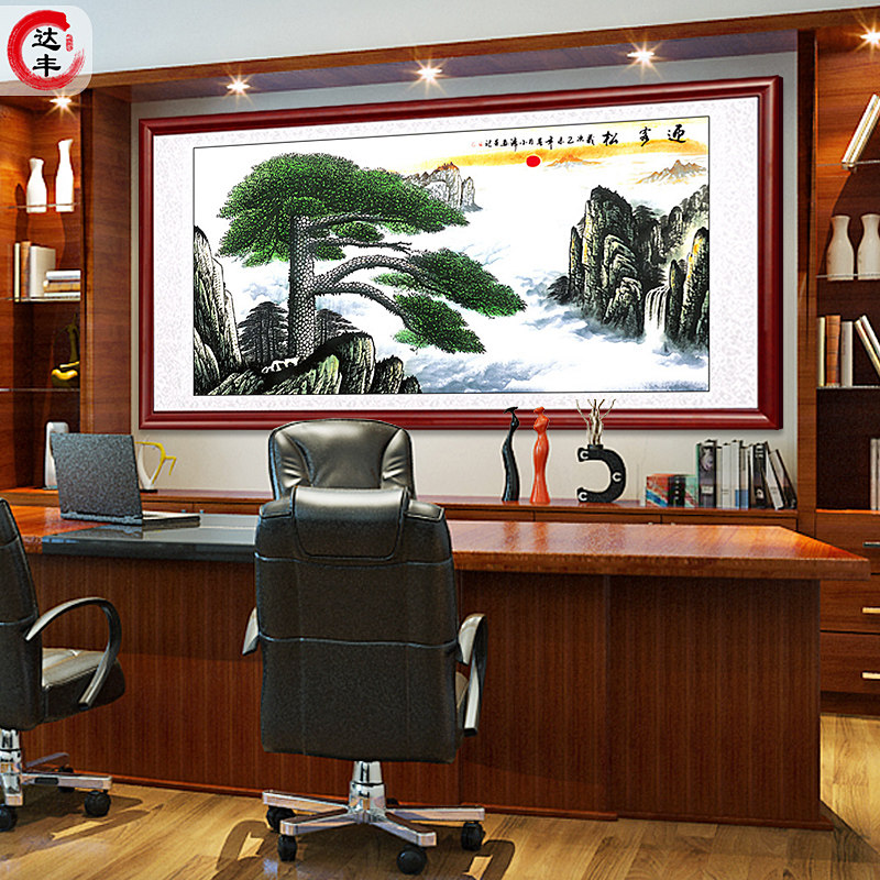 国画带框迎客松挂画办公室装饰画农村堂屋山水画中式客厅大气横幅热门设计联盟服务商