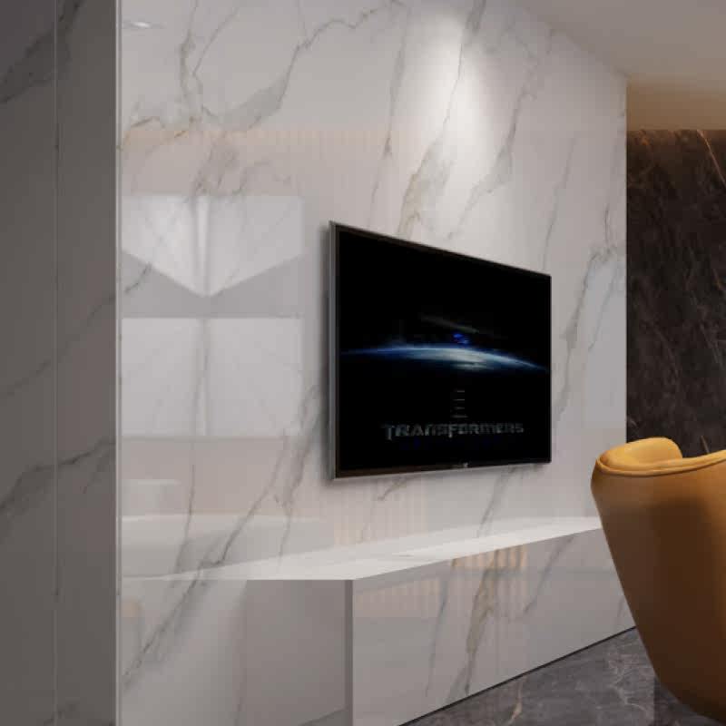 2022款网红轻奢客厅大理石现代电视背景墙岩板瓷砖影视墙大板悬空热门设计联盟服务商