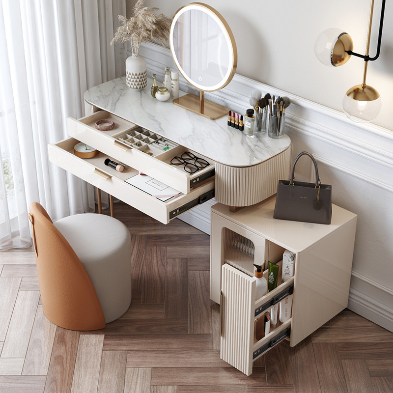 轻奢高级岩板梳妆台收纳柜一体卧室现代简约2021新款设计师化妆桌热门设计联盟服务商