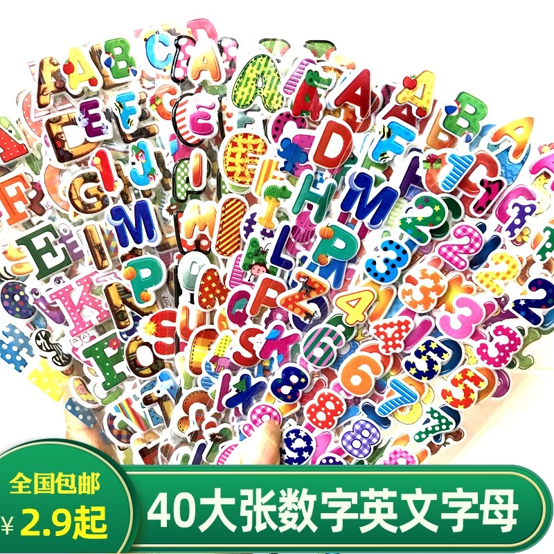 数字英文字母儿童认知识字早教益智贴纸幼儿园小孩奖励卡通小贴画热门设计联盟服务商