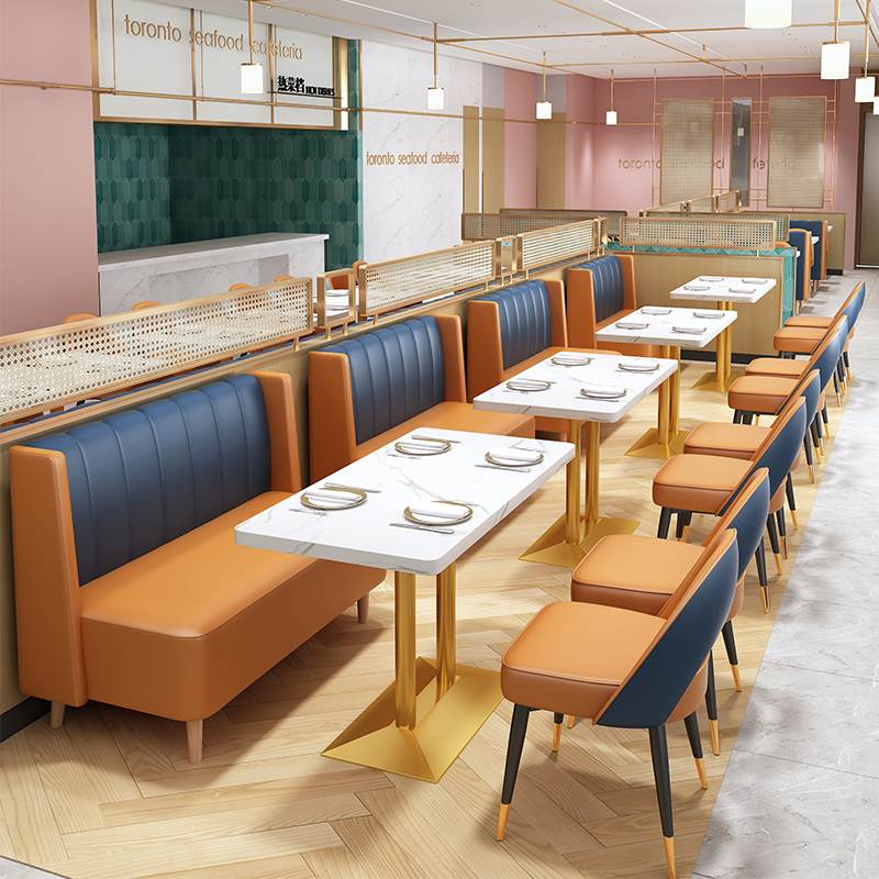 定制轻奢餐厅饭店靠墙卡座沙发西餐厅奶茶汉堡餐饮店商用桌椅组合热门设计联盟服务商