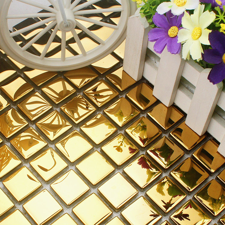 金黄色反光玻璃马赛克 店铺门头招牌背景墙装饰玻璃 KTV装修材料热门设计联盟服务商